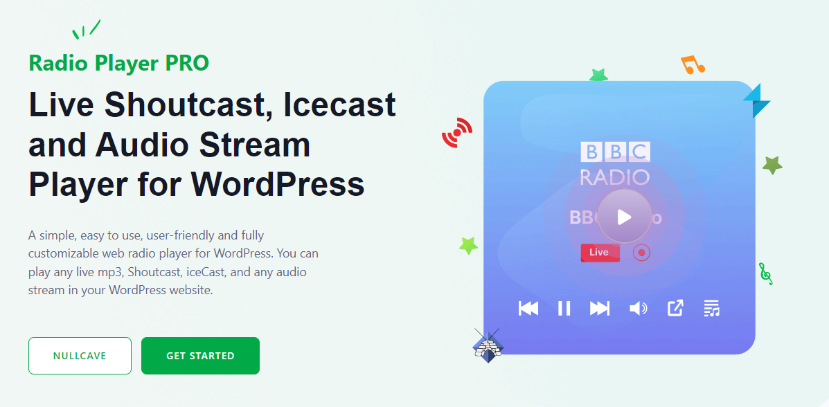 Radio Player PRO – 适用于WordPress的实时 Shoutcast、Icecast 和音频流播放器是一款简单、易用、用户友好且完全可定制的 WordPress 网络电台播放器。您可以在 WordPress 网站中播放任何实时 mp3、Shoutcast、iceCast 和任何音频流。