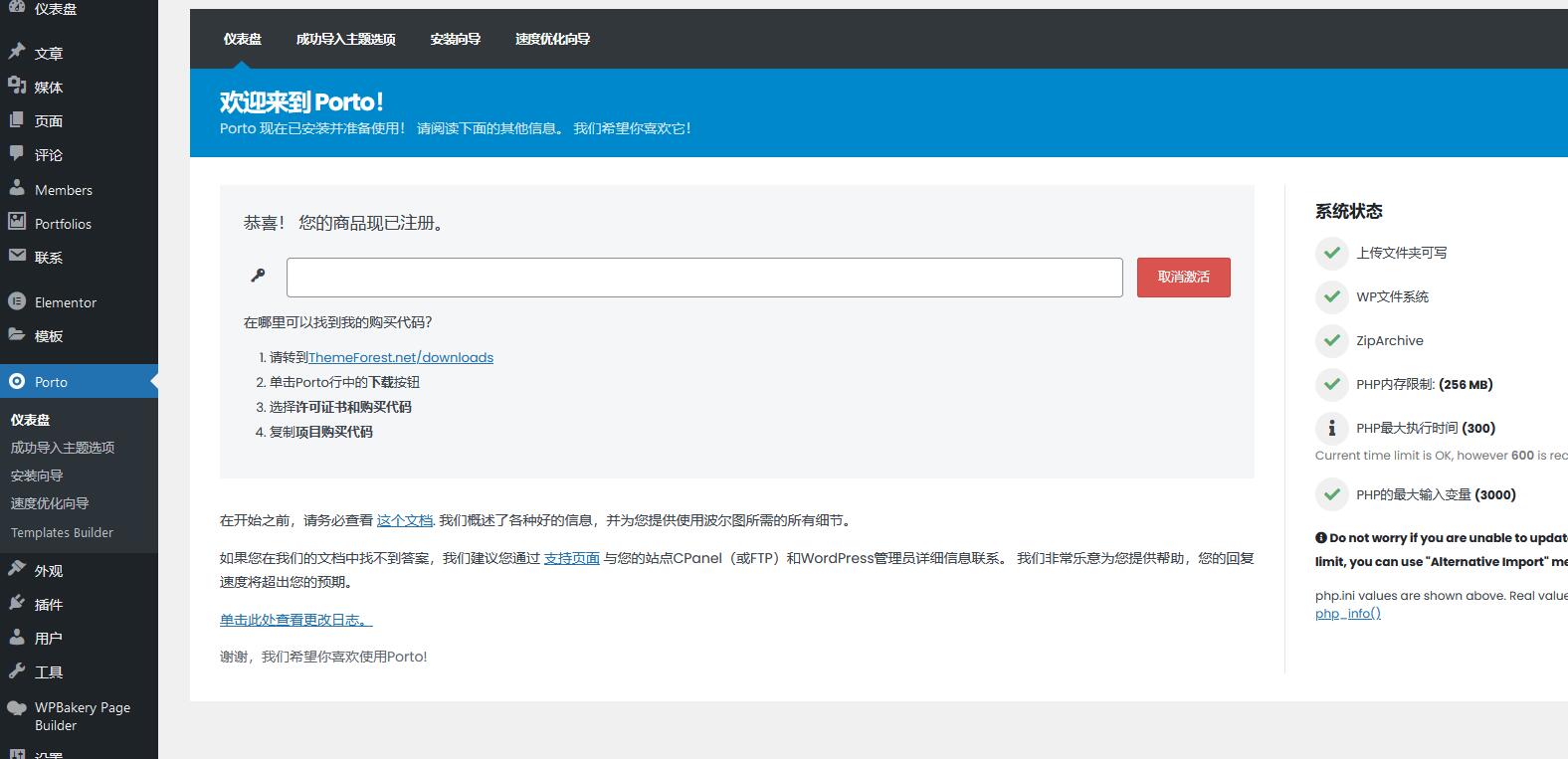 最后按F5键刷新后台,到这里Porto主题的汉化安装就完成了。
